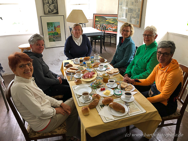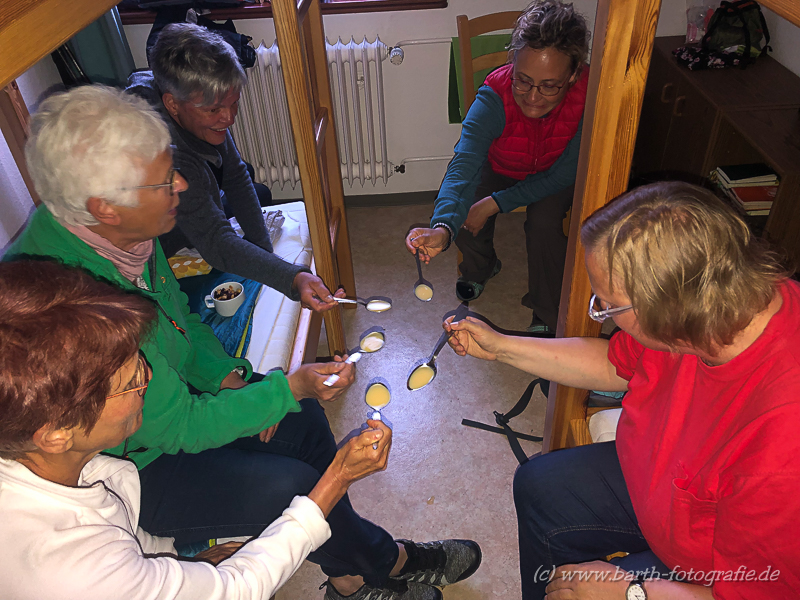 - Gemeinsame Verpflegung (Frühstück und Abendessen). Tagsüber versorgt sich jeder selbst aus dem Rucksack, wofür es unterwegs genügend Einkaufsmöglichkeiten gibt.